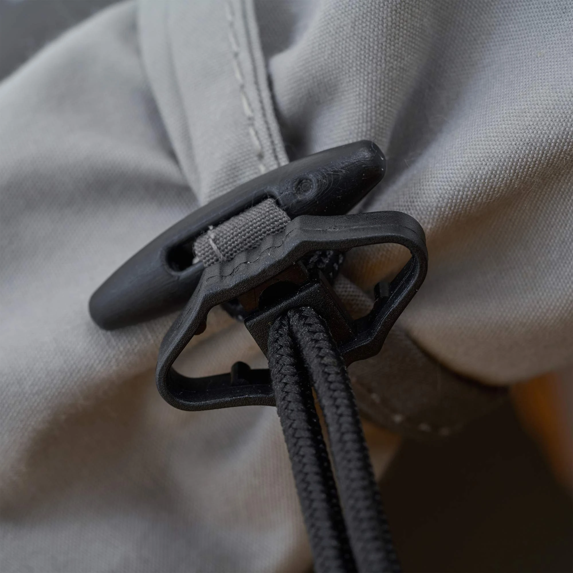 • Breiter, seitlicher Einstieg (mit den beiliegenden Tarpstangen als Vordach abspannbar)