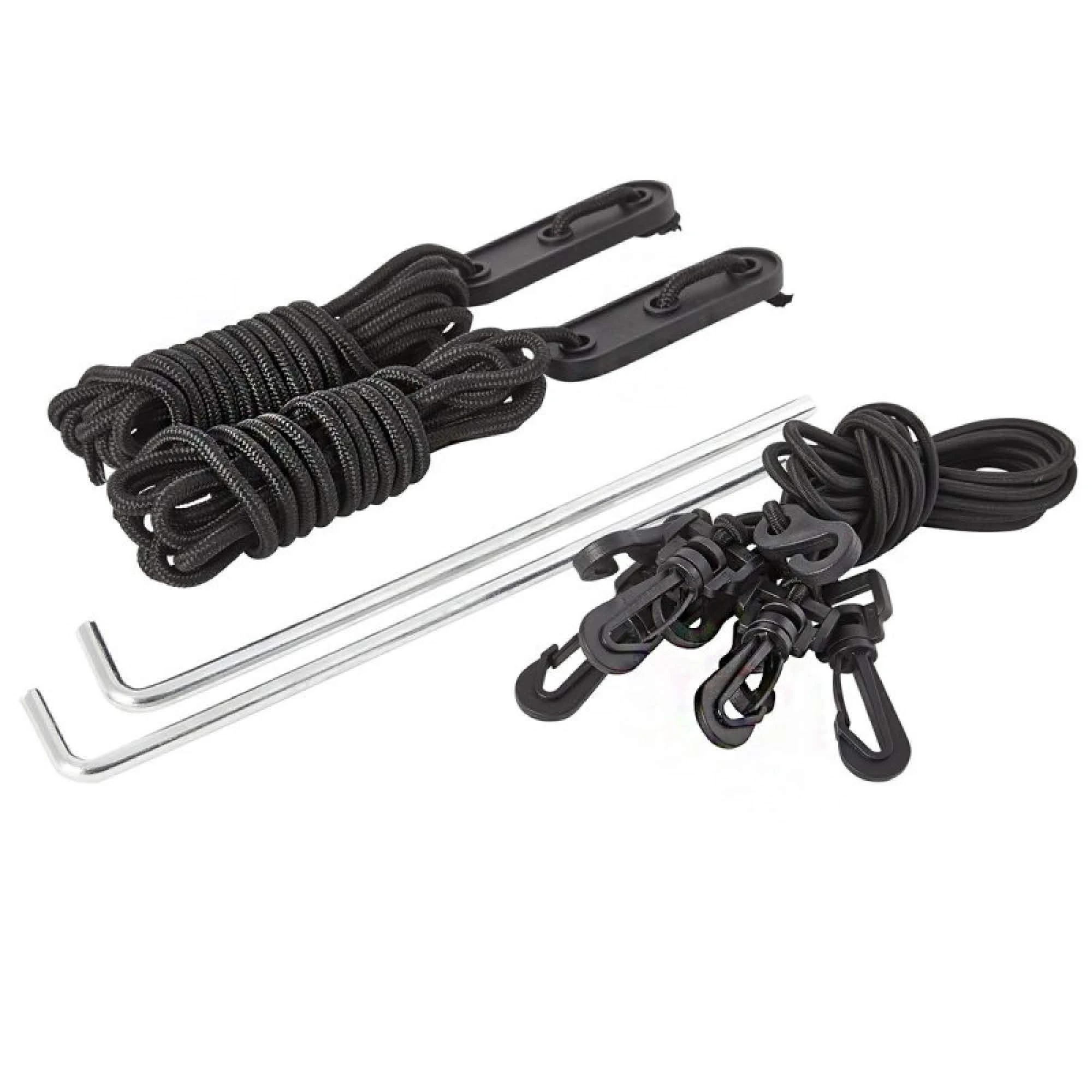 Praktisch sind vor allem die beiden geräumig ausfallenden Schuhtaschen. Wen auch schlechtes Wetter nicht vom „Draußenschlafen“ abhalten kann, kommt so trockenen und sauberen Fußes ins Innere des tollen Zelts. Alle Belüftungsöffnungen sind zudem mit feinmaschigem Moskito-Gaze versehen. So kannst du lästige, blutsaugende Plagegeister draußen halten und bist im Inneren in Sicherheit. Eine hochwertige Teleskopleiter mit einer Traglast von stolzen 150 kg und einer Länge bis 2,3 m ist genauso mit von der Partie wie eine praktische Regenhülle, Montagehalterungen und einer Tasche für allerhand Zubehör.
